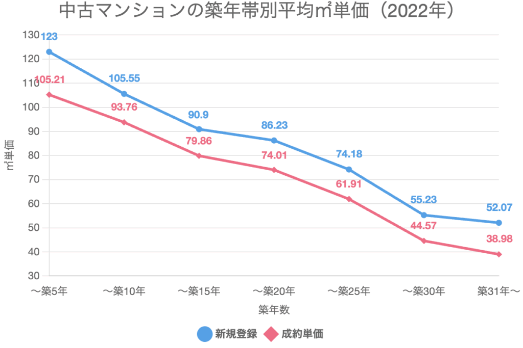 皆さん「新しいほどいい」という感覚をお持ちだと思います。でも、ある程度年数が経ってくると、築年数による価格差ってそこまで大きくないんですよ。